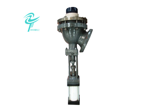 结构特点:旁置气缸上展式搪玻璃放料阀,它由连杆将气缸、上展式放料阀组合而成,